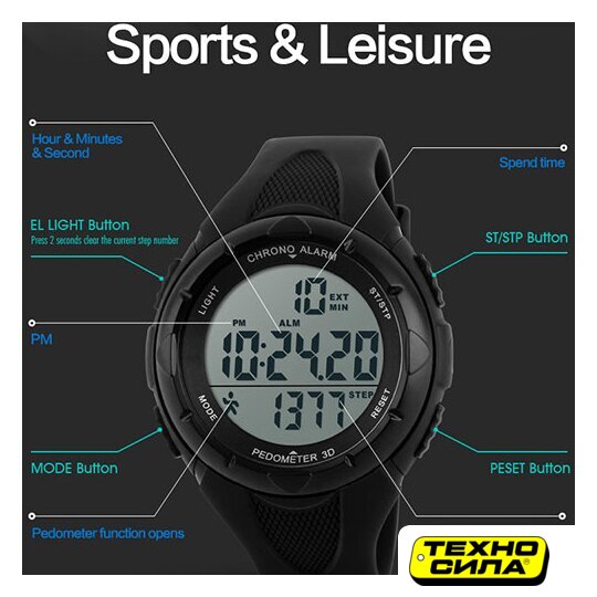 мужские, механизм электронный, корпус: пластик, 55 мм, пластиковое стекло, 50 м, браслет пластиковый