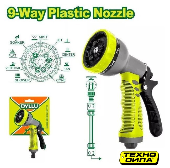 распылитель пистолет, 9 режимов, пластик, с регулировкой расхода, с регулировкой дальности