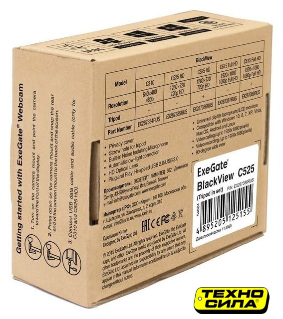 Комплект поставки | - WEB-камера;- Штатив Flex EX287381RUS;- Руководство пользователя. |
