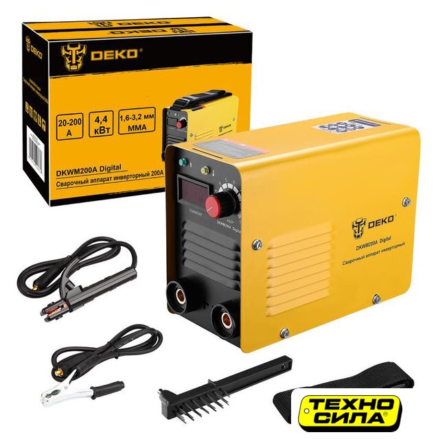 ручная дуговая сварка (MMA), входное напряжение 220 В, сварочный ток: 20-200 А, диаметр электрода: 1.6–4 мм, 2.5 кг