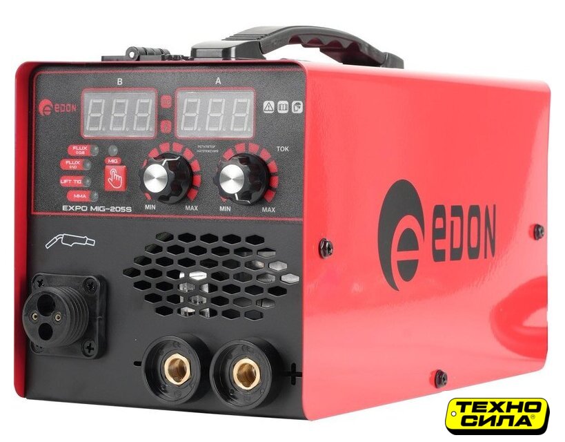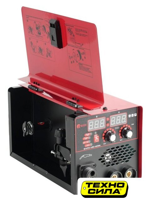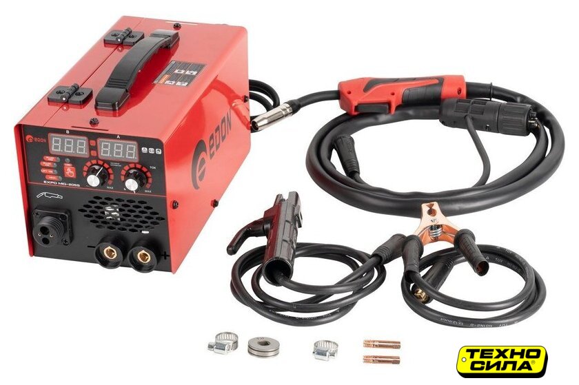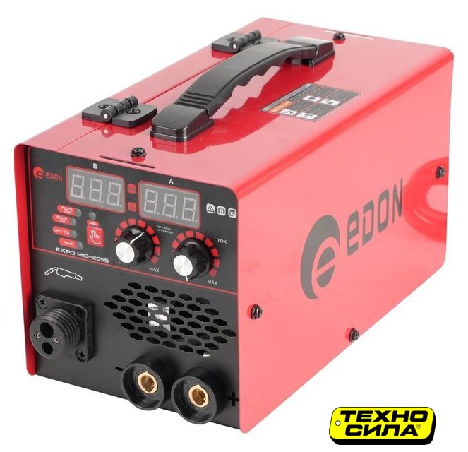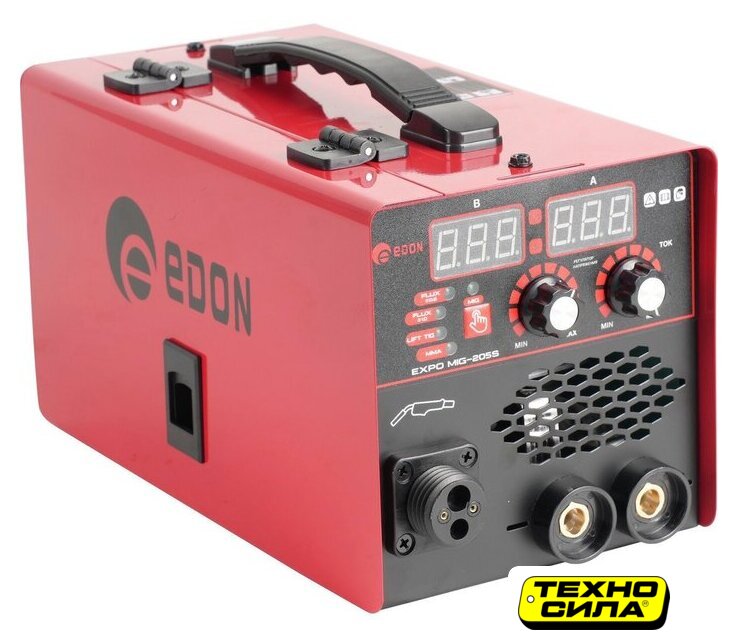 ручная дуговая сварка (MMA)/полуавтоматическая сварка (MIG MAG), входное напряжение 220 В, сварочный ток: 30–200 А, диаметр электрода: 2–4 мм, 5.1 кг
