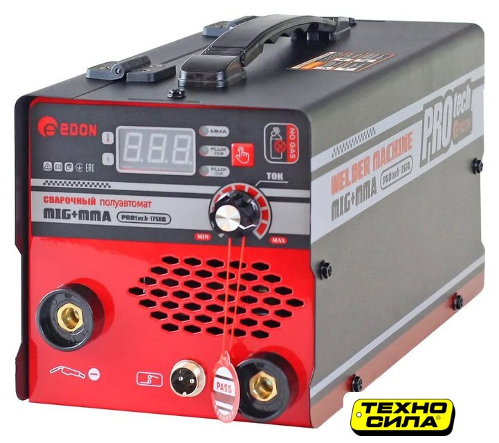 ручная дуговая сварка (MMA)/полуавтоматическая сварка (MIG MAG FCAW), входное напряжение 220 В, сварочный ток: 20–180 А, диаметр электрода: 1.6–4 мм, 2.7 кг