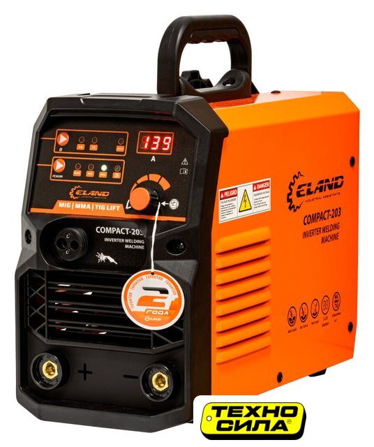 ручная дуговая сварка (MMA)/полуавтоматическая сварка (MIG MAG FCAW), входное напряжение 220–240 В, сварочный ток: 40-200 А, 7.5 кг