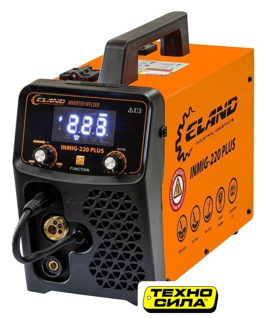 ручная дуговая сварка (MMA)/полуавтоматическая сварка (MIG MAG), 220 В, сварочный ток: 10–220 А, диаметр электрода: 1.6–4 мм, 9.2 кг