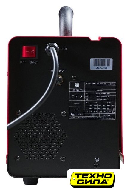Максимальный сварочный ток | 180 А (MMA: 160; TIG: 180) |