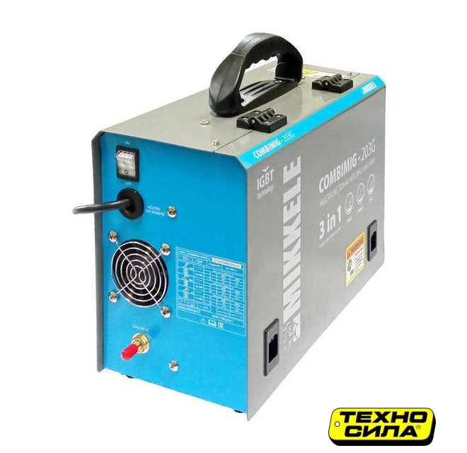 ручная дуговая сварка (MMA)/полуавтоматическая сварка (MIG MAG), входное напряжение 195–245 В, сварочный ток: 20–180 А, диаметр электрода: 2–4 мм, 8.6 кг