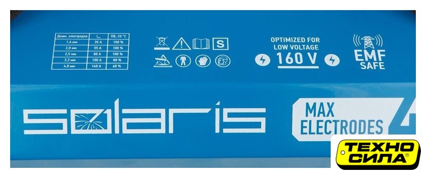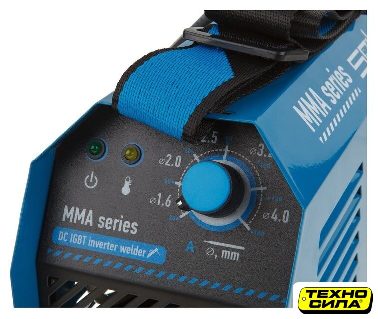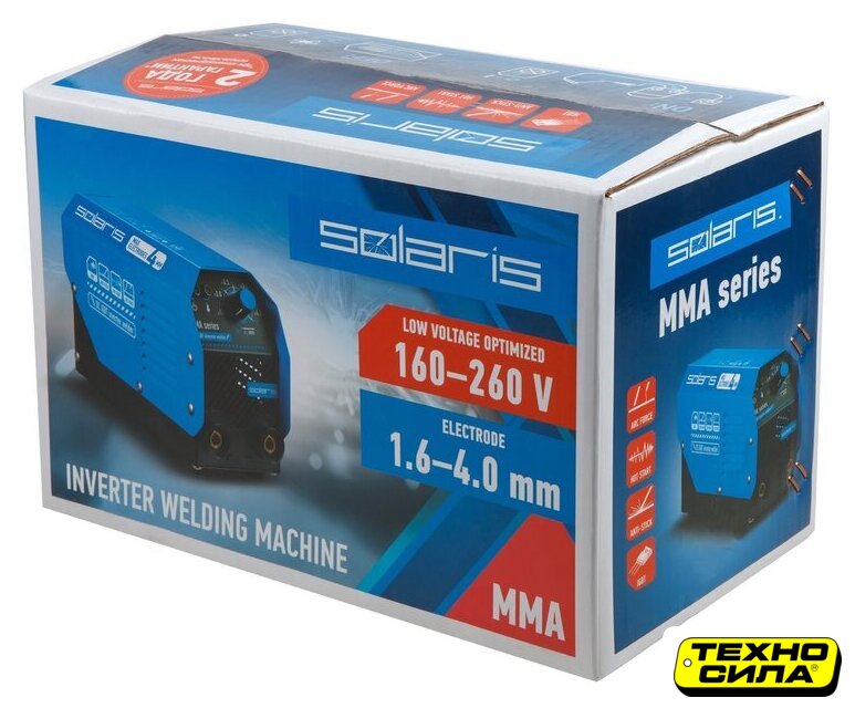 ручная дуговая сварка (MMA)/аргонодуговая сварка (TIG), входное напряжение 150–240 В, сварочный ток: 20–160 А, диаметр электрода: 1.6–4 мм, 3.56 кг