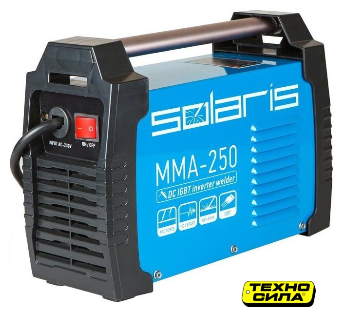 ручная дуговая сварка (MMA), входное напряжение 220–240 В, сварочный ток: 15-160 А, диаметр электрода: 1.6–3.2 мм