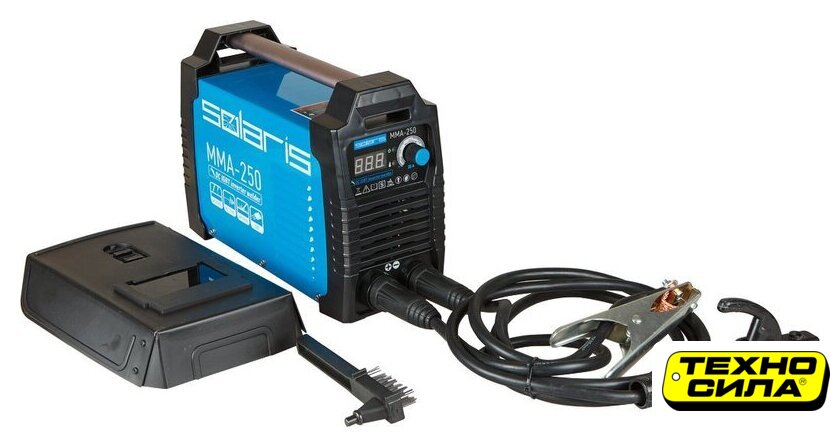 Комплект поставки | Сварочный аппарат Электрододержатель с кабелем 1.8 метра Клемма заземления с кабелем 1.5 метра Сварочная маска Щетка-молоток для шлака Инструкция Коробка |
