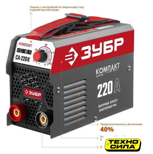 ручная дуговая сварка (MMA), 220 В, сварочный ток: 20–140 А, диаметр электрода: 1.6–4 мм, 3.4 кг