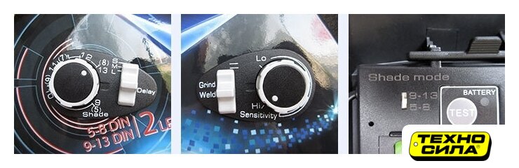 Диапазон затемнения светофильтра | 5 — 13 DIN (DIN5-DIN8 для сварки на малых токах, DIN9 - DIN13 для стандартных сварочных задач) |