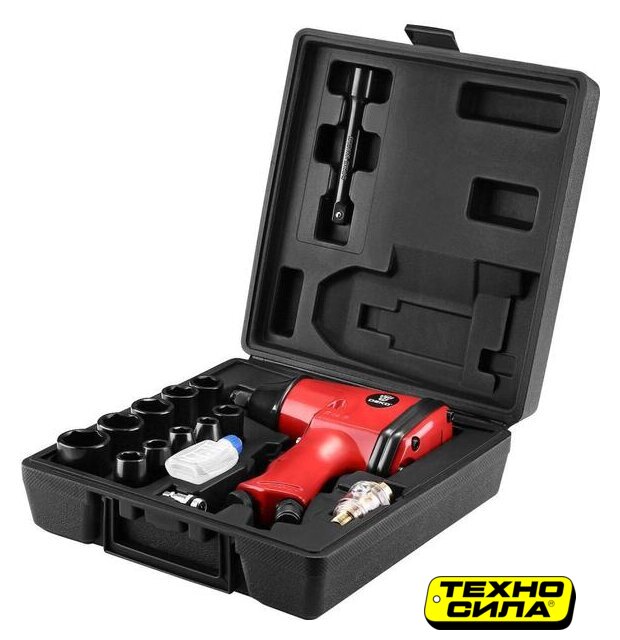 Комплектация | Ударный гайковерт - 1/2"1/2" ключ - 1 шт.1/2" головки: 9,10,11,13,14,17,19,22,24,27 мм - 10 шт.1/2" к 5" удлинитель - 1 штМасленка - 1 шт4 мм шестигранный ключ - 1 шт.Боек - 1 шт.Масло для пневмоинструмента - 1 шт. |