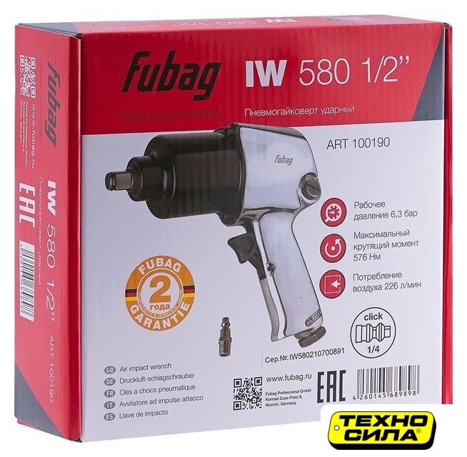 ударный, 610 Нм, 7500 об/мин, расход воздуха: 198 л/мин, давление: 6.3 бар, 2600 г