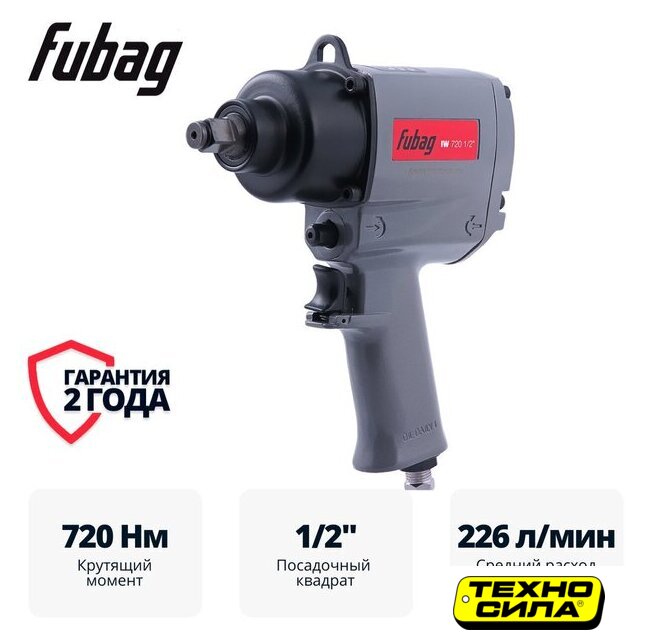 ударный, 720 Нм, 8000 об/мин, расход воздуха: 226 л/мин, давление: 6.3 бар, 2994 г