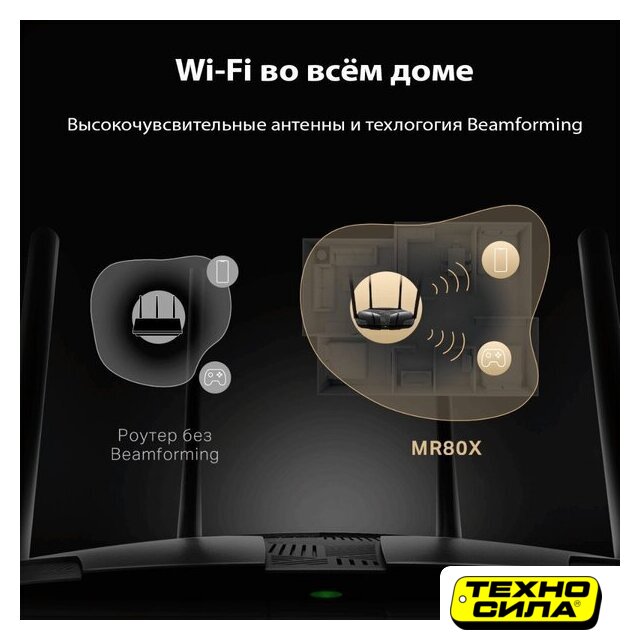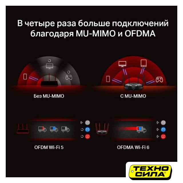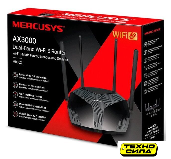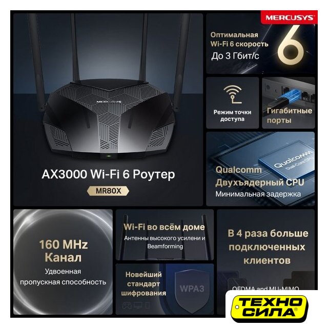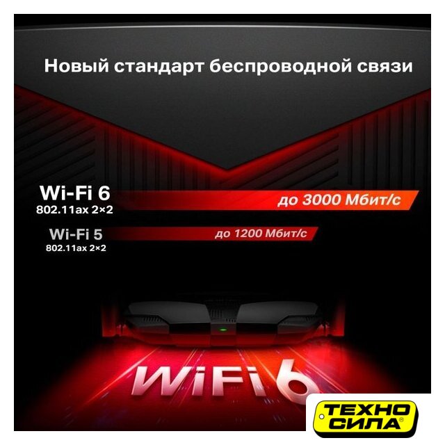 802.11ax (Wi-Fi 6), 2.4 ГГц/5 ГГц, до 1500 Mbps, WAN, 3xGigabit LAN