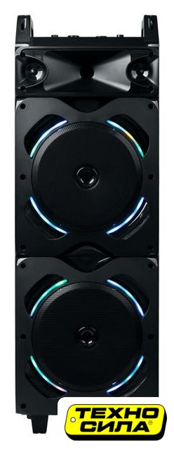 номинальная мощность 150 Вт, воспроизведение с USB/microSD, питание от аккумулятора, BT, NFC, AUX, время работы: 20 ч.