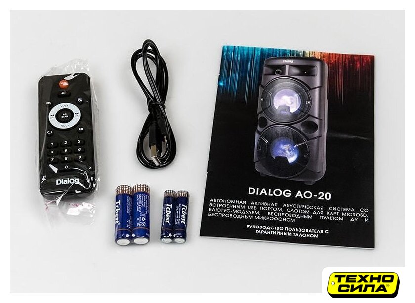 | Комплектация | - пульт ДУ- батарейки для пульта ДУ (2xAAA)- беспроводной микрофон- батарейки для микрофона (2xAA)- кабель для зарядки- документация |