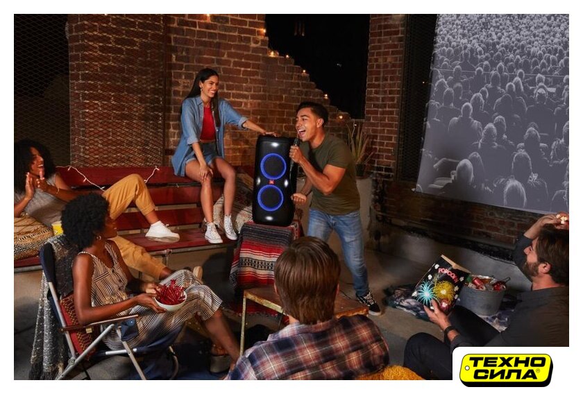 номинальная мощность 100 Вт, воспроизведение с USB, питание от сети и аккумулятора, BT 5.4, AUX, влагозащита IPX4, время работы: 15 ч.