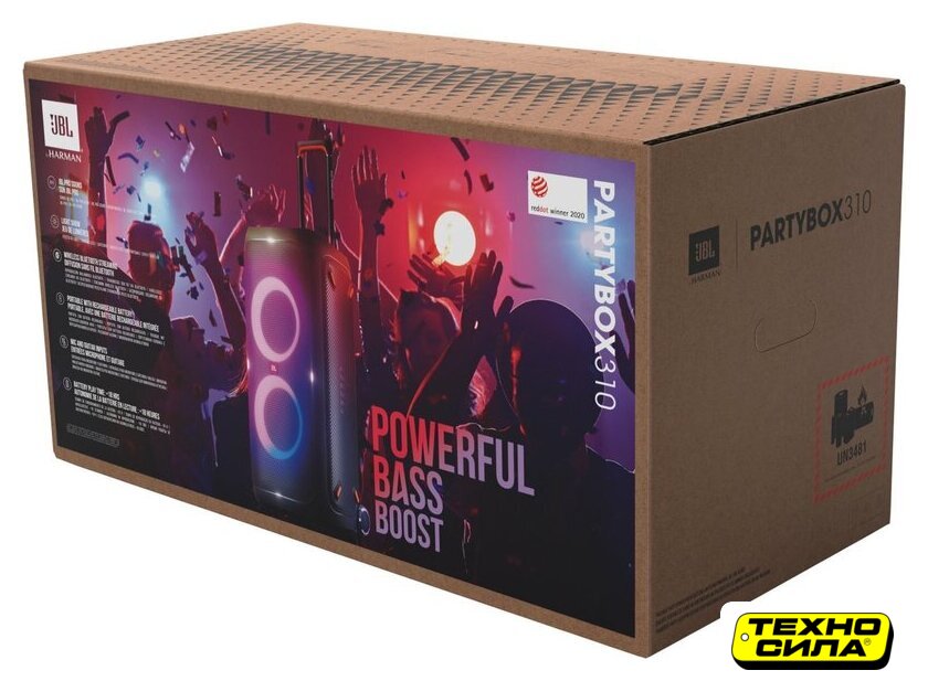 номинальная мощность 160 Вт, воспроизведение с USB, питание от сети и аккумулятора, BT 5.4, AUX, влагозащита IPX4, время работы: 12 ч.