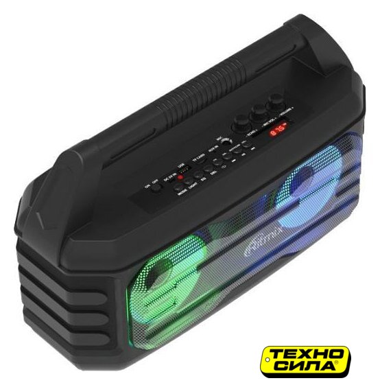номинальная мощность 15 Вт, воспроизведение с USB, питание от сети и аккумулятора, BT 5.1, AUX, время работы: 4 ч.