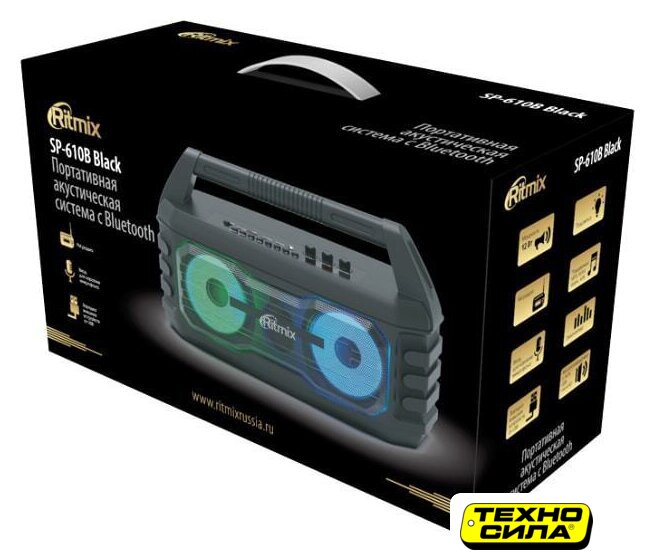 20 Вт, питание: аккумулятор, USB, FM, Audio In, Bluetooth, цвет черный