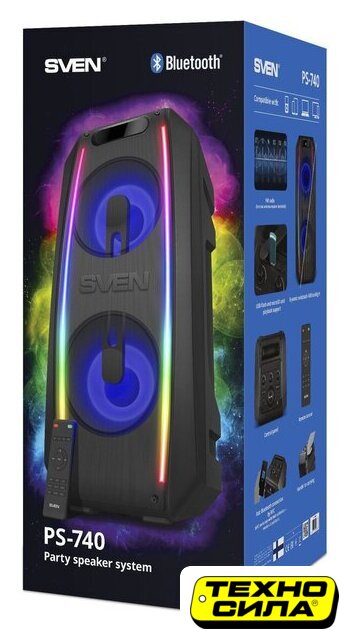 номинальная мощность 75 Вт, воспроизведение с USB/microSD, питание от сети и аккумулятора, BT 5.0, AUX, время работы: 7 ч.