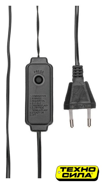 бахрома, для использования в помещении/на улице, длина 3 м, 90 ламп, питание от сети, свечение мерцающее, IP65, провод черный резиновый