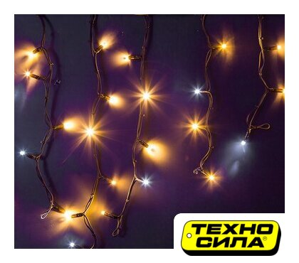 гирлянда, для использования в помещении/на улице, длина 10 м, 100 ламп, питание от сети, свечение мерцающее, IP65, провод черный резиновый