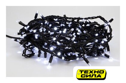 гирлянда, для использования в помещении/на улице, длина 10 м, 100 ламп, питание от сети, свечение мерцающее, IP65, провод черный резиновый
