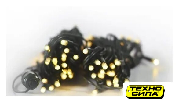 гирлянда, для использования в помещении/на улице, длина 10 м, 100 ламп, питание от сети, свечение мерцающее, IP65, провод черный резиновый